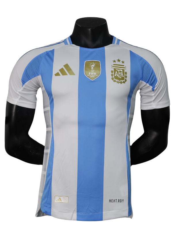 🇧🇷 Reviva a histórica conquista da Argentina na Copa do Mundo FIFA 2022 com a Camisa Argentina Copa do Mundo 22 Home, desenvolvida pela Adidas. Utilizada por Lionel Messi e seus companheiros na jornada rumo ao tricampeonato mundial, essa camisa exibe o tradicional design listrado em azul e branco, além do escudo da AFA com três estrelas, celebrando a conquista no Catar. Com tecnologia AEROREADY, garante respirabilidade e conforto, seja dentro de campo ou no dia a dia.