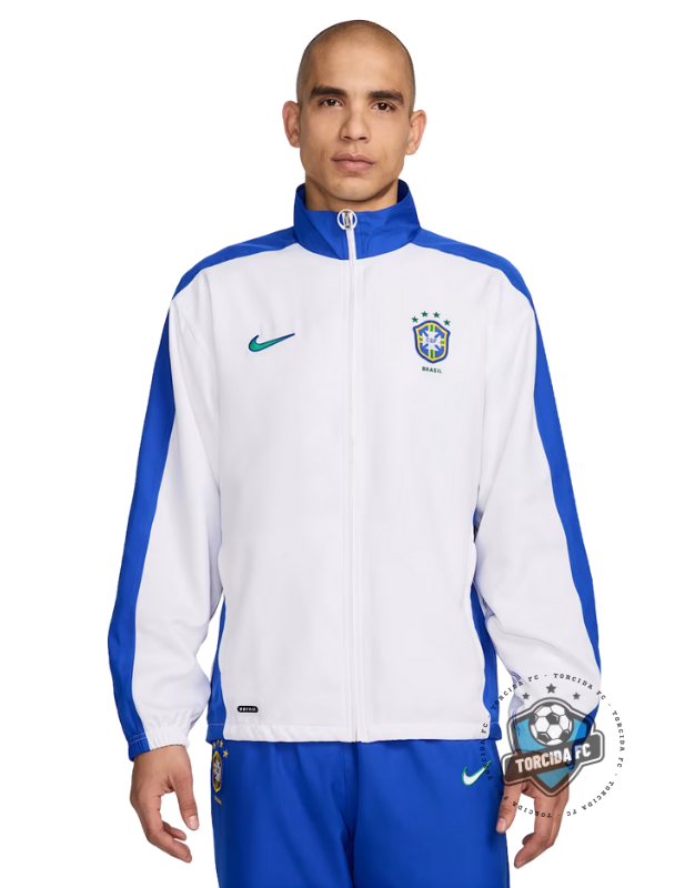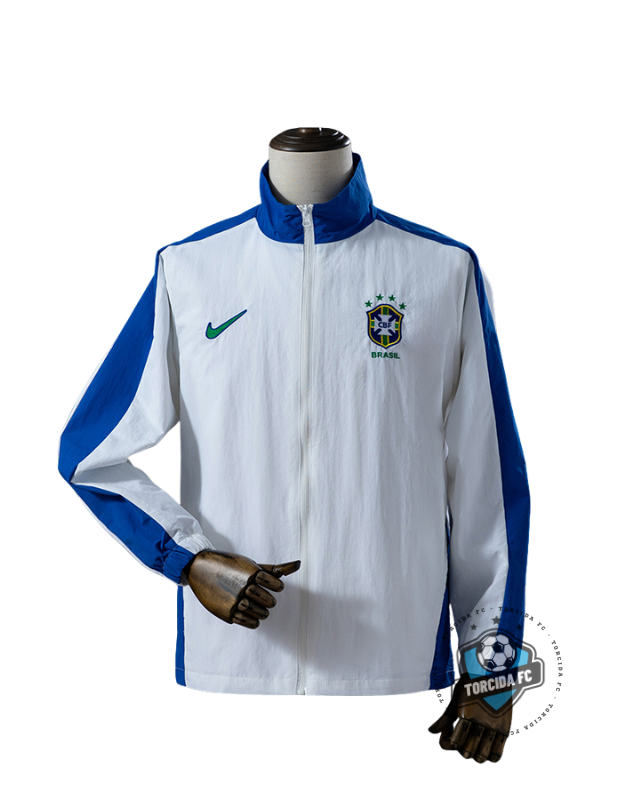 🇧🇷 Jaqueta Brasil 1998 Retrô – Branco e Azul Clássico