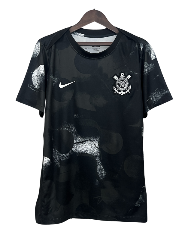 🇧🇷 Prepare-se para entrar em campo com a Camisa Corinthians 25/26 Pré-Jogo, uma peça essencial para os torcedores do Timão. Desenvolvida pela Nike, essa camisa combina um design moderno em preto e branco, refletindo a identidade e a tradição do clube.