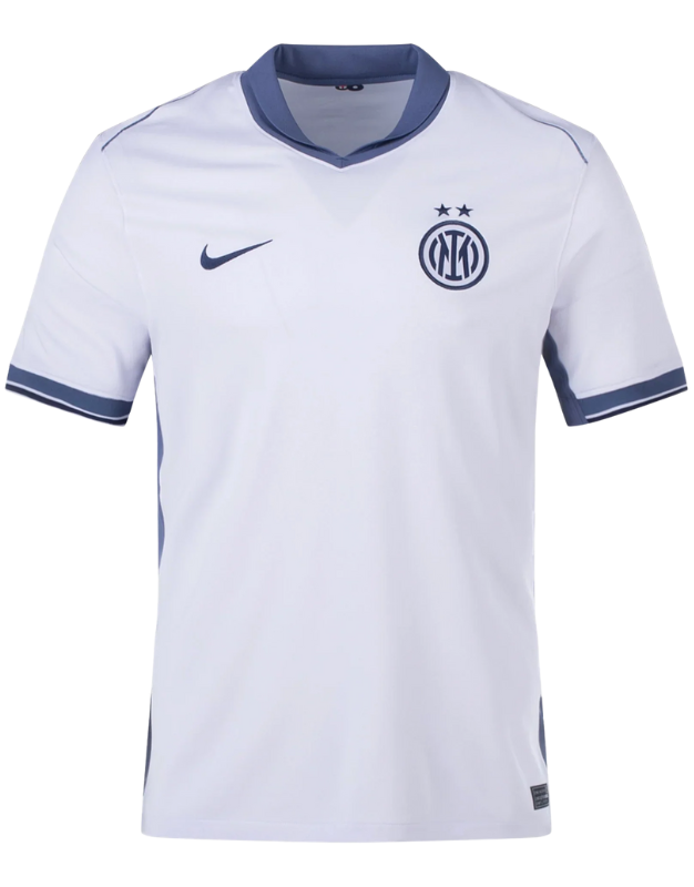 🇺🇸 Celebrate the heritage and style of Inter Milan with the 24/25 Away Jersey. This year’s design pays tribute to the club’s tradition while incorporating a modern and elegant look. Featuring a predominantly white base, the jersey is enhanced with blue and black details, symbolizing the iconic Nerazzurri colors. The embroidered Inter crest add an authentic touch, while Dri-FIT technology ensures maximum comfort and breathability, keeping you cool whether you're in the stands or on the pitch.