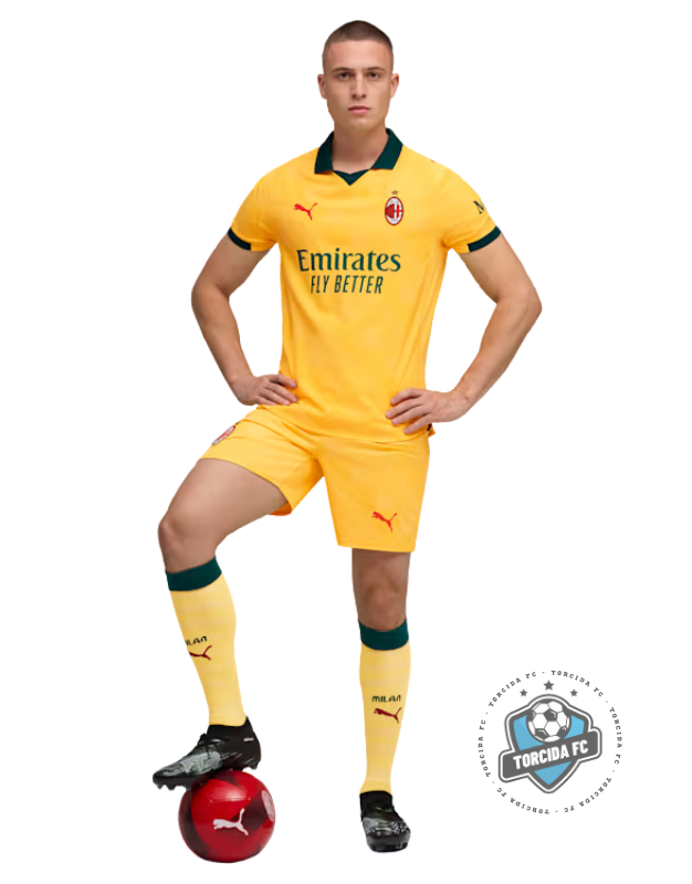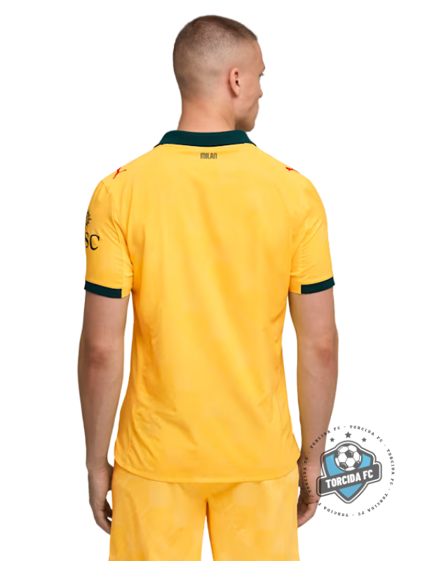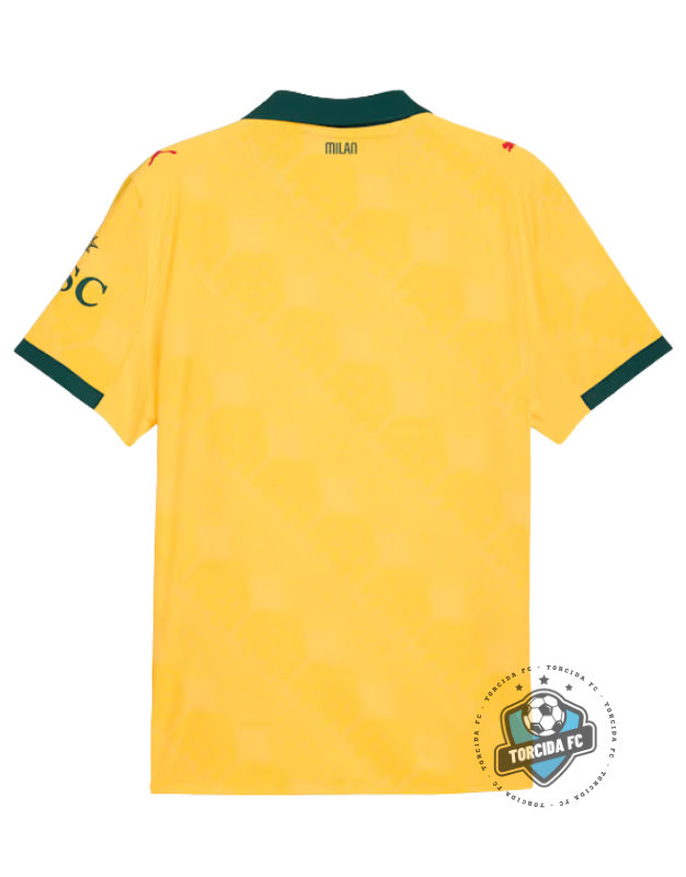 The AC Milan 25/26 Third Jersey stands out in rich yellow with dark green collar and sleeve details, plus a subtle geometric texture that adds depth. Built for all-day comfort with lightweight, breathable performance fabric, it’s a bold third look for the season—perfect from San Siro nights to city streets.