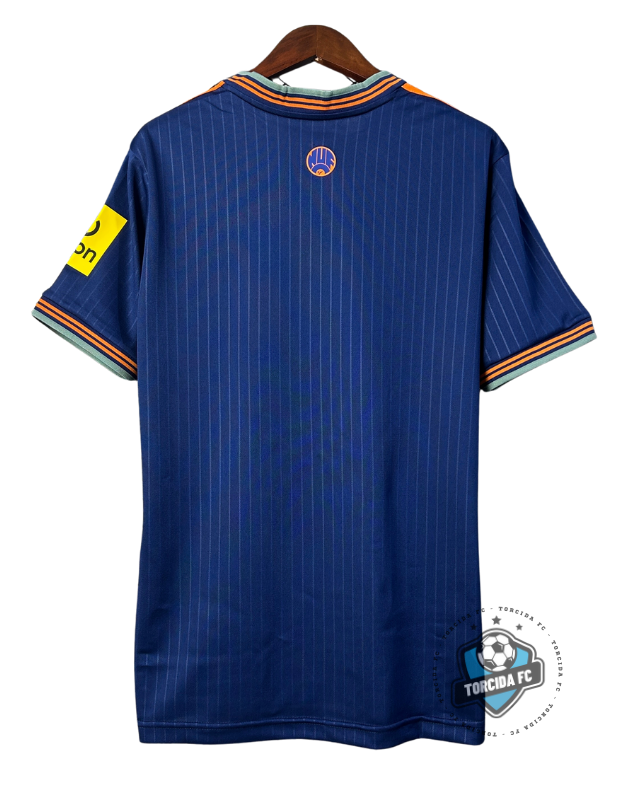 A Camisa Newcastle United 25/26 Third apresenta um visual ousado e estiloso, unindo a base azul marinho com detalhes em laranja vibrante. Este uniforme traz a energia moderna sem perder a essência do espírito guerreiro do Newcastle. Produzida para conforto e performance, é o manto perfeito para quem quer se destacar com orgulho nos dias de jogo e no dia a dia.