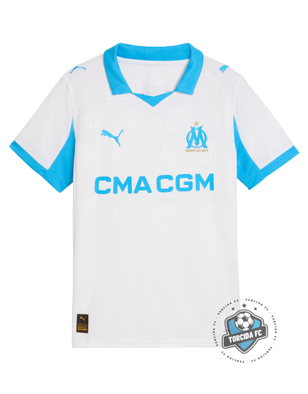 🇧🇷 Camisa Olympique de Marseille 25/26 Home – Do Velódromo para o mundo.Inspirada na história do Olympique de Marseille, esta camisa Home combina o branco tradicional com detalhes em azul claro, simbolizando orgulho, tradição e paixão. Ideal para dias de jogo, uso casual ou para torcedores que carregam o espírito do OM.
