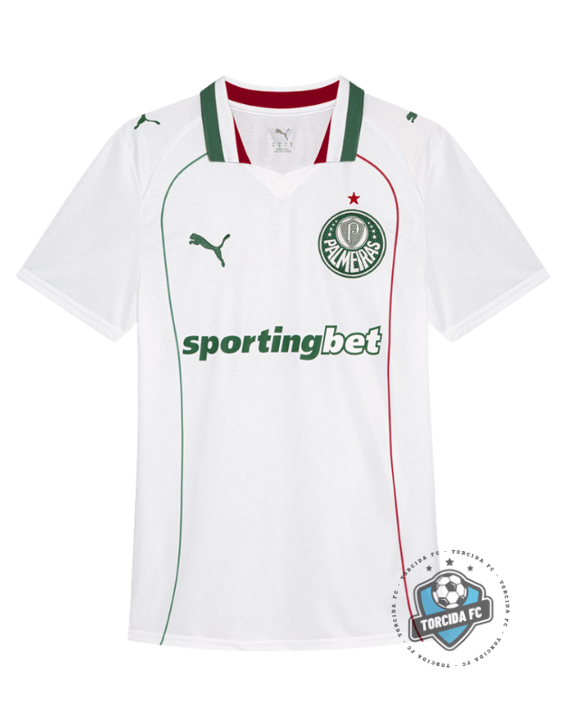 A camisa away do Palmeiras 26/27 aposta em um visual elegante e minimalista, com base branca e detalhes sutis em verde e vermelho que remetem à história do clube. Pensada para o torcedor que valoriza tradição com um toque atual, ela oferece conforto, leveza e excelente respirabilidade, ideal tanto para jogos quanto para o dia a dia.
