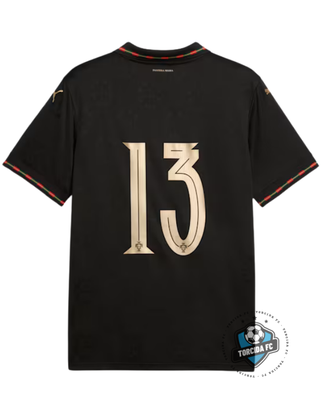 🇺🇸 Black & gold — the legend lives on.The Portugal 25/26 Special Edition Jersey arrives in a sleek black design with gold details and green-red trims, a tribute to a timeless No. 13 icon known as the Pantera Negra. This is a commemorative special release that celebrates national heritage and greatness. Lightweight and breathable, it’s made for match days and everyday pride.